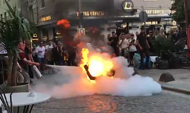 İstanbul’da elinde plastik orakla gezen, Galata Kulesi Meydanı’nda tinerle kendini yakan 28 yaşındaki kişi, kaldırdığı hastanede kurtarılamayarak hayatını kaybetti.