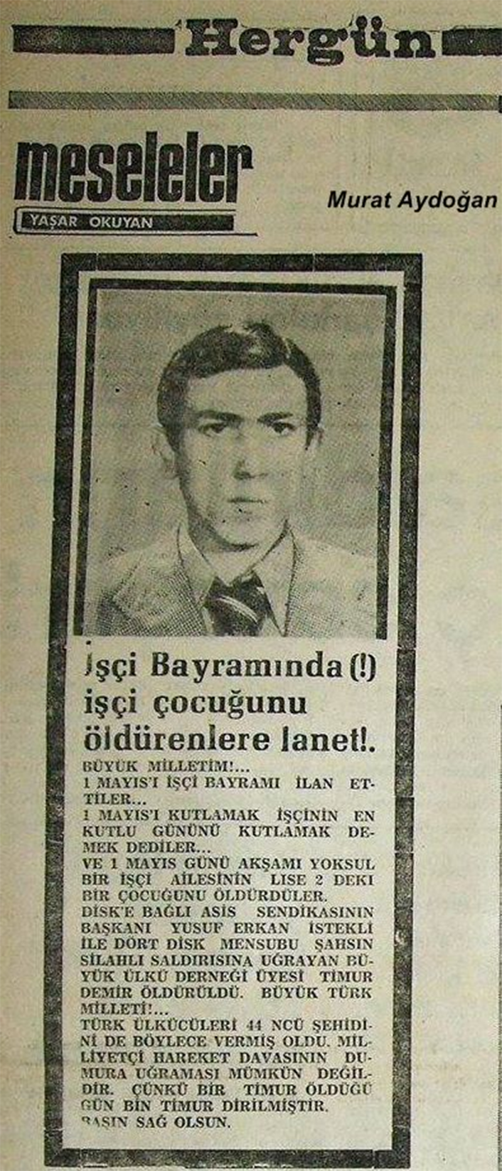 19 yaşında olup İstanbul’un Gültepe semtinde oturuyordu. Olay günü, İstanbul 1. Levent’te, Philips Fabrikası yakınlarında karşılaştığı 1 Mayıs afişleri asan bir grup komünist militan tarafından kurşunlanarak şehit edildi.