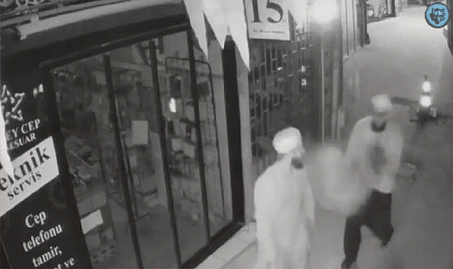 Trabzon'da üzerinde Atatürk'ün posterinin yer aldığı Türk bayrağı, sokakta yürüyen kişi tarafından asıldığı ipten koparıldı. Güvenlik kamerasına yansıyan olayla ilgili 2 şüpheli, gözaltına alındı.Trabzon'daki Kemerkaya Mahallesi Cevdet Akçay Sokak'ta cep telefonu aksesuarları satışı yapan işletmenin sahibi, bir süredir dükkanın önündeki ipte asılı duran Atatürk'lü Türk bayrağının yerinde olmadığını fark edip güvenlik kamerası kayıtlarını izledi.İş yeri sahibi, dün akşam saatlerinde sokaktan geçen cübbeli ve şalvarlı 2 kişiden birinin, etrafı kontrol ettikten sonra ipe asılı Türk bayrağını çekip alarak bölgeden uzaklaştığını tespit etti. Şikayet ve olay anına ilişkin görüntülerin paylaşıldığı sosyal medyadaki tepkiler üzerine soruşturma başlatan polis, bayrağı koparan V.E. ile yanındakinin de A.S. olduğunu belirledi. 2 şüpheli gözaltına alınıp sorgulanmak üzere emniyete götürüldü.